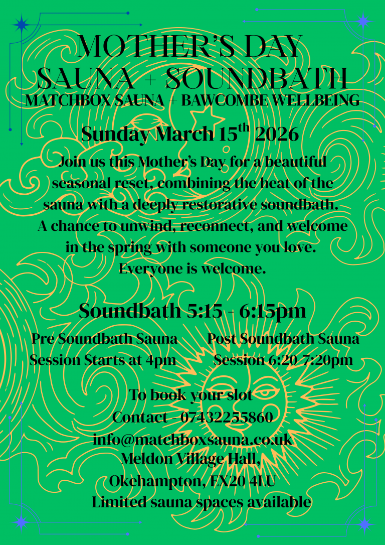 We’re teaming up with Bawcombe Wellbeing for a beautiful combination of heat, breath, sound and stillness.